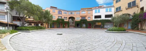 Progettata dallo scultore Andrea Cascella , la piazza di Porto Rotondo è imponente con la sua pavimentazione in granito.